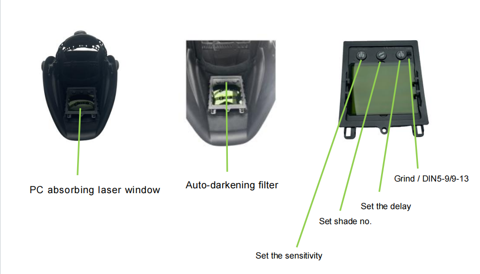 ● This helmet can not only be used for MMA, MIG and TIG welding area, but also laser protection.